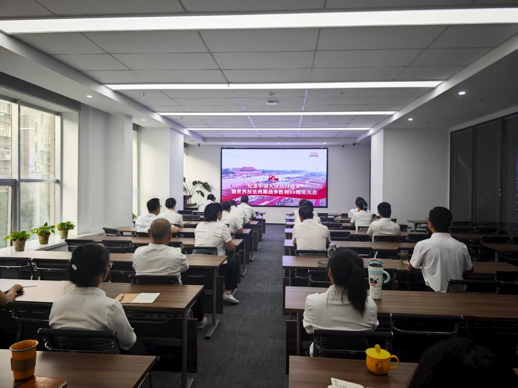 9月3日上午9時,甘肅建投培訓中心有限公司組織全體職工觀看了紀念中國人民抗日戰爭暨世界反法西斯戰爭勝利80周年大會,共同見證了這一具有重大歷史意義的時刻。 上午9時,大會在北京天安門廣場隆重舉行,中共中央總書記、國家主席、中央軍委主席習近平發表重要講話并檢閱部隊。職工們聚精會神...